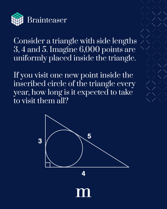 The answer to the brainteaser above is: ≈3,142 years (A millennium x Pi)